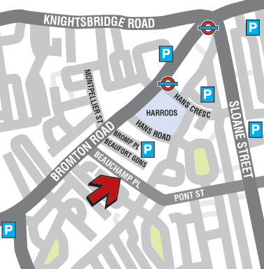 We are a just a short walk from the Harrods exit of Knightsbridge underground station. Nearby bus stops are serviced by routes: 14, 141, C1 and 74.